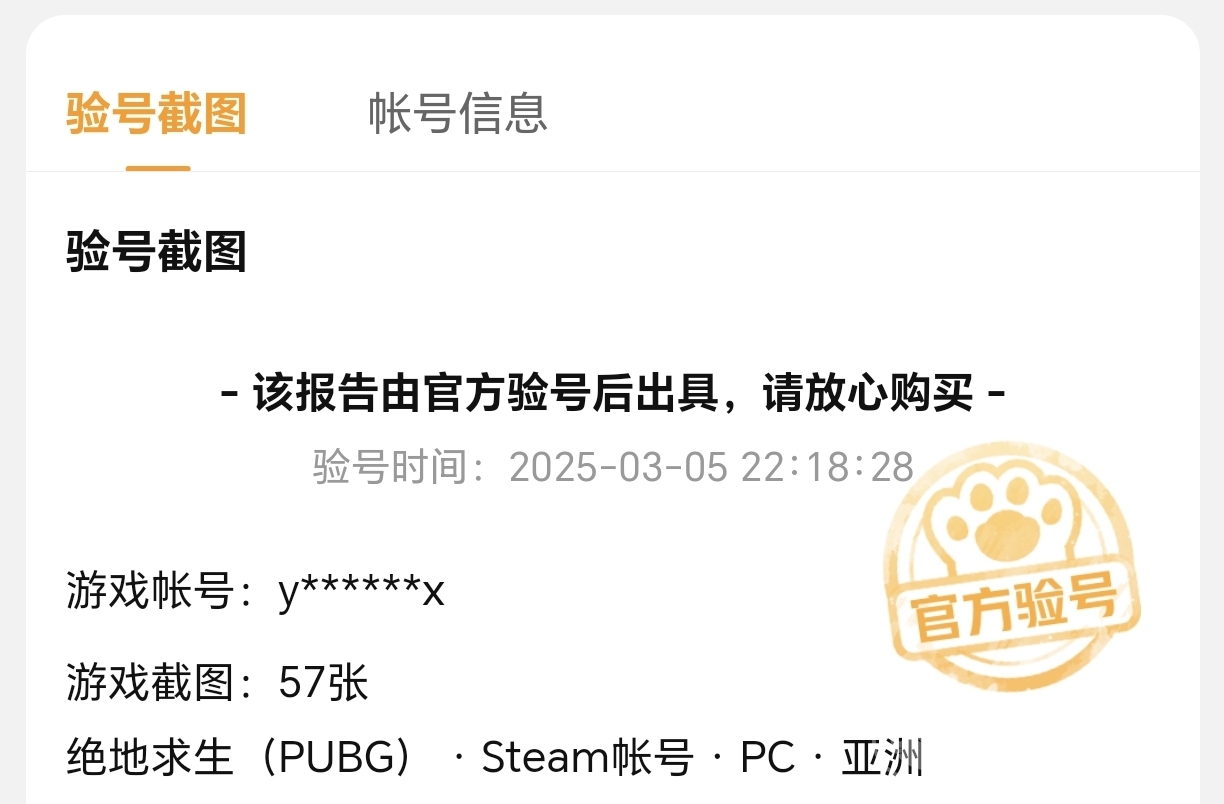 來源: 極光 作者: 罪惡集 2025年03月12日 20:23在如今的游戲市場(chǎng)中,購(gòu)買絕地求生賬號(hào)成為了很多玩家的需求之一,但“購(gòu)買絕地求生賬號(hào)那個(gè)平臺(tái)安全”成了許多人關(guān)注的焦點(diǎn)。畢竟,網(wǎng)絡(luò)交易存在一定的風(fēng)險(xiǎn),尤其是在游戲賬號(hào)這種虛擬財(cái)產(chǎn)上。因此,選擇一個(gè)可靠的平臺(tái)至關(guān)重要。在眾多選擇中,交易貓平臺(tái)憑借其出色的安全性和豐富的賬號(hào)資源,成為了玩家們的首選。交易貓不僅提供了嚴(yán)格的賬號(hào)驗(yàn)證機(jī)制,還保障交易過程中的每一個(gè)環(huán)節(jié)都有安全防護(hù),確保玩家的賬戶不受侵害。