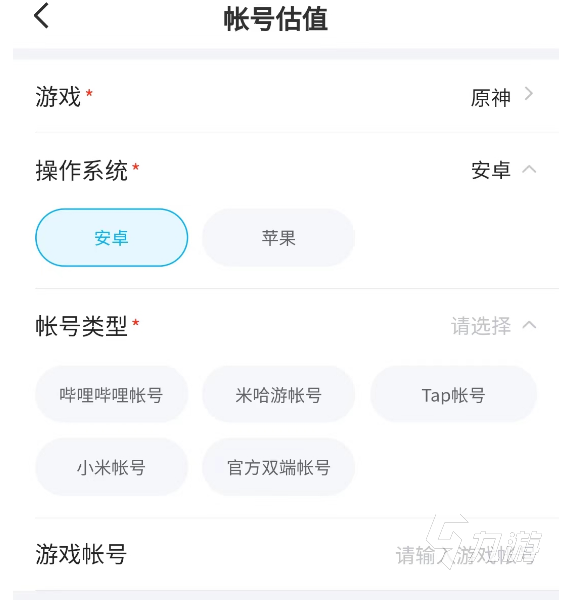 買(mǎi)到初始號(hào)之后怎么知道自己買(mǎi)得值不值呢?交易貓里面的免費(fèi)估價(jià)專(zhuān)區(qū)就有原神的選項(xiàng),只需將賬號(hào)里有的角色和武器給輸入進(jìn)去,系統(tǒng)就會(huì)自動(dòng)匹配信息幫你估出價(jià)格,現(xiàn)在交易貓能支持免費(fèi)估價(jià)的游戲并不多,而恰好原神就是其一,所以大家要好好利用。