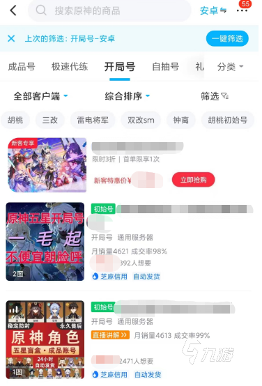 交易貓中原神專(zhuān)區(qū)內(nèi)有海量的初始號(hào),像是包括單個(gè)刻晴、迪盧克、雷電將軍的初始號(hào),只要是有自己喜歡的角色,都可以搜索查詢一下,就包括最新版本的五星角色基本也都有,除了角色之外,還可以附帶一些五星的武器,綜合性價(jià)比極高,每個(gè)商品標(biāo)題前面都有帶價(jià)格。