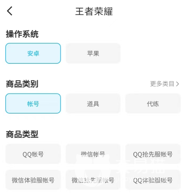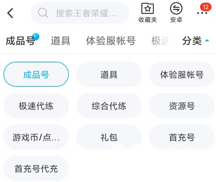 目前在該平臺(tái)內(nèi),直接為玩家們提供了一個(gè)針對(duì)王者榮耀的游戲?qū)^(qū),各種價(jià)格的賬號(hào)在這里會(huì)直接得到展示,而玩家們可以根據(jù)自己的要求以及購(gòu)號(hào)預(yù)算來(lái)進(jìn)行篩選即可。并且,大家通過(guò)平臺(tái)提供的分類(lèi),也可以在專區(qū)當(dāng)中找到道具以及體驗(yàn)服游戲號(hào)的交易信息。