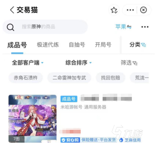 來源: 極光 作者: 可樂凌 2022年12月16日 21:20有些原神玩家覺得自己運(yùn)氣不好,或懶得花費(fèi)時間肝,因此希望買個原神成品號玩。那么原神成品號多少錢,在哪個平臺買比較好也是大家所關(guān)心的。找到一個合適的平臺購買原神成品號,既保險又愜意,這里小編就給大家推薦交易貓平臺,能夠讓你們輕松購買到自己需要的游戲賬號。