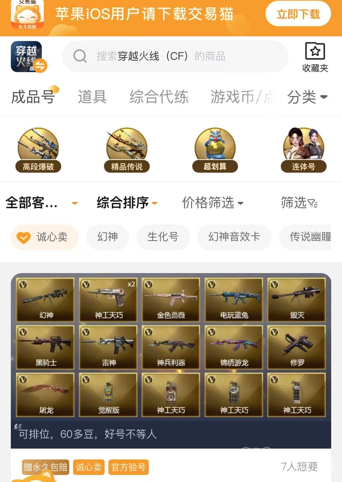 以上就是關(guān)于穿越火線賬號買賣平臺的推薦內(nèi)容啦,交易貓平臺它擁有穿越火線游戲的海量賬號資源可供玩家們?nèi)我膺x擇,還有十分安全的保障體系以及安心售后服務(wù),有需求的小伙伴們趕緊點擊上方鏈接下載交易貓體驗一下吧。