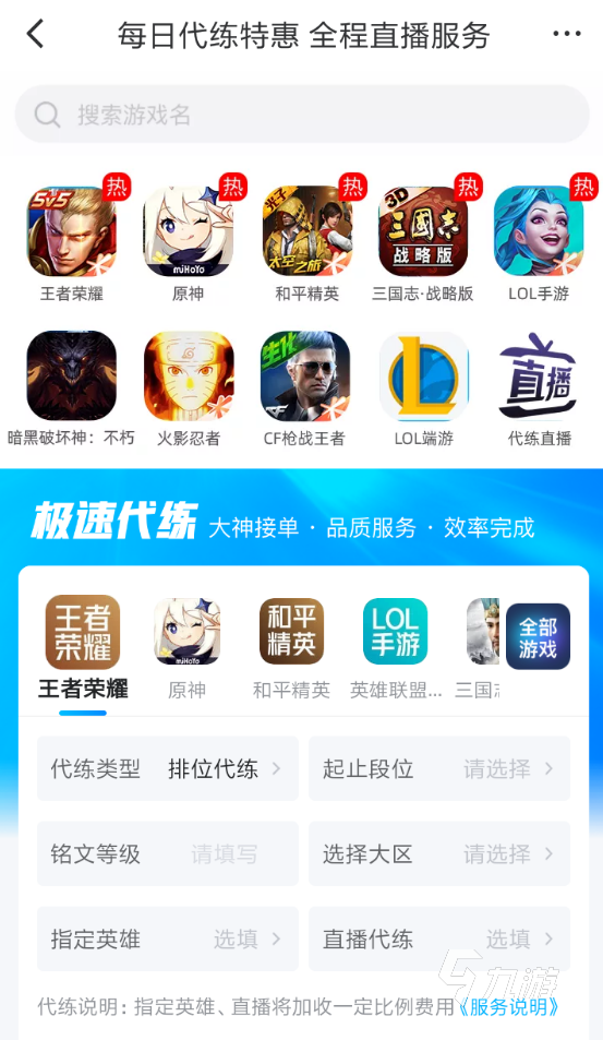 3、作為一個專業(yè)的交易平臺,除了可以滿足玩家不同的交易需求以外,各位還可以直接在平臺當中尋找自己滿意的代練服務。對于平時游戲時間較少的玩家來說,找一個代練幫助自己去培養(yǎng)游戲角色也是一件非常劃算的事情。
