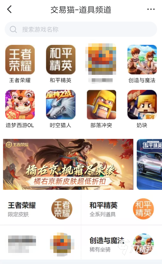 2、當然,部分游戲玩家其實不太喜歡購買別人的游戲號,但同樣希望獲得各種稀有道具,那么此時大家只需要進入到交易貓的道具頻道內去挑選喜歡的商品即可。因為在該頻道當中,主要開放的商品類型就是游戲內的各種道具。