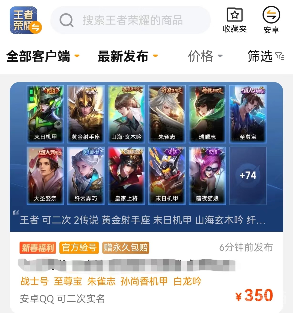 目前王者游戲方皮膚更新速度也是非??欤屹|(zhì)量都不低,越是后出的皮膚在外觀(guān)和特效上質(zhì)量越高,不像曾經(jīng)那些上古時(shí)代的寶貝,玩家這才樂(lè)意下單購(gòu)買(mǎi)。普通皮膚下單一個(gè)在兩位數(shù),限定皮膚大部分都是200以?xún)?nèi),最貴的要屬典藏皮膚如果抽獎(jiǎng)需要花上千才能拿到一個(gè)榮耀水晶,通常一個(gè)國(guó)服價(jià)格也在500-2000之前。各位想要賣(mài)號(hào)的小伙伴建議使用交易貓平臺(tái),它已經(jīng)專(zhuān)注游戲賬號(hào)交易10年,屬于同行業(yè)中的元老級(jí)別。