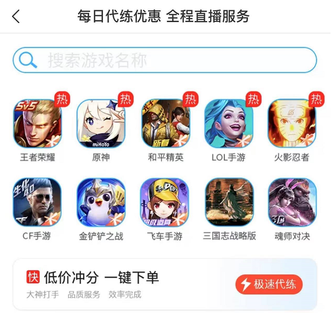 除了上面說的這些,平臺還為大家開放了直播代練功能,如果說本身的時間不錯,又想要角色能快速成長的話,那么選擇它就非常的不錯,尤其是那些不想錯過一些稀世道具的小伙伴,就更加不能錯過了,和大神直接聯系,完成要求的效率也非常高,不用擔心會有效率太差或者服務不會的情況發(fā)生。