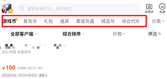 因?yàn)槟壳斑@款游戲還沒(méi)有在國(guó)服正式上線,外服賬號(hào)的交易比較麻煩,而考慮到該游戲支持游戲內(nèi)的自由交易,所以平臺(tái)上提供了游戲幣、首充號(hào)、禮包、道具、渠道充值、代練這幾方面的服務(wù)。