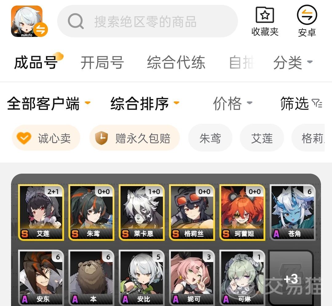絕區(qū)零游戲本質(zhì)上還是通過抽取卡牌來組合自己的戰(zhàn)斗陣容完成主線關(guān)卡的挑戰(zhàn),從而解鎖更多玩法。而前期的訓(xùn)練其實是非常簡單而又瑣碎的,比如說新手入坑,如果不知道自選角色哪個強的話,后面推圖其實是受到很大影響的。所以就可以來交易貓選一個擁有著艾蓮、格莉絲還有貓又這種強勢S級別代理人賬號。安卓玩家直接點擊上方按鈕下載正版官方交易貓,ios蘋果玩家前往交易貓官網(wǎng)即可體驗。