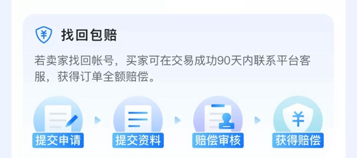 在線上交易中,小伙伴們最擔(dān)心的還是交易安全的問(wèn)題,往往許多小伙伴再完成賬號(hào)交易后。自己花錢買來(lái)的賬號(hào)被原來(lái)的號(hào)主找回賬號(hào)最后落得一個(gè)人財(cái)兩空的下場(chǎng),可所謂十分痛苦。但是在交易貓平臺(tái)中小伙伴們就可以打消這個(gè)疑慮了,交易貓平臺(tái)中有部分游戲是帶有保障服務(wù)的。如果賣家找回賬號(hào),小伙伴們也可以通過(guò)聯(lián)系客服或者平臺(tái)進(jìn)行申訴,小伙伴們就可以獲得賠償。可所謂是萬(wàn)無(wú)一失了。