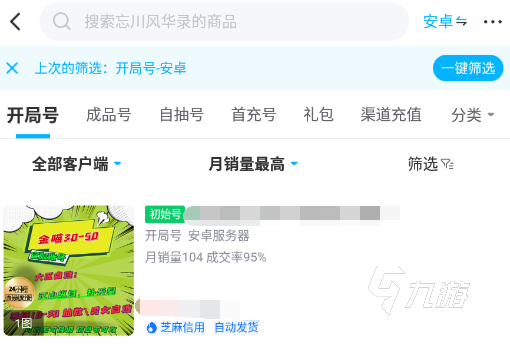 至于賬號交易的話,肯定還是需要一個比較安全且好用的平臺的,小編在這里給大家推薦一下“交易貓”,玩家登錄上這個平臺后,可以直接在首頁搜索“忘川風華錄”,然后點擊上面的“開局號”,再選中“月銷量最高”的詞條,就可以快速的篩選出比較靠譜的初始號了。