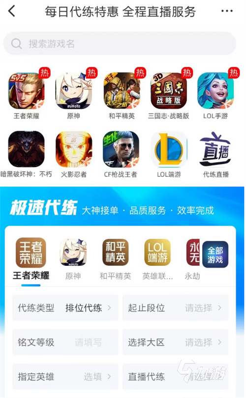 同時(shí)它為了能讓玩家的游戲體驗(yàn)更好,針對一些平時(shí)比較忙,沒有時(shí)間上號的玩家,還帶來了代練功能,自由的去挑選想要的大神,讓他們來幫助自己戰(zhàn)斗,效率高,服務(wù)好,全程直播代肝,進(jìn)度隨時(shí)都能掌控到。