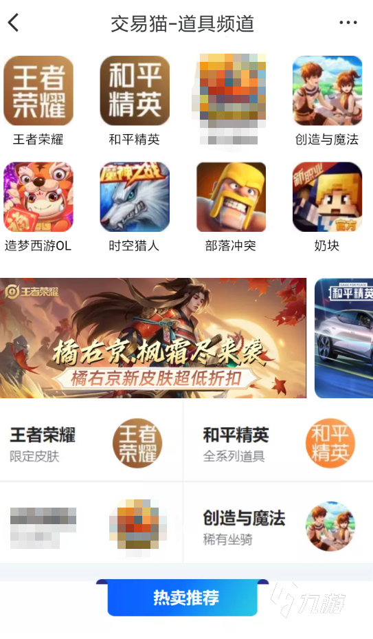 3、當(dāng)各位玩家成功得到了滿意的高級游戲賬號時,還可以進(jìn)入到交易貓的道具頻道當(dāng)中來獲取新的內(nèi)容。這一個頻道內(nèi)主要是進(jìn)行游戲當(dāng)中的各種稀有道具進(jìn)行交易,對于想要獲取某一種游戲道具的玩家來說,在該頻道當(dāng)中將找到自己喜歡的商品。