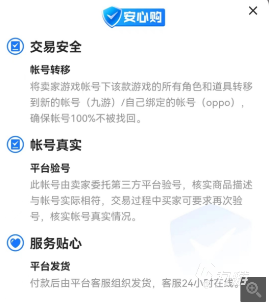 玩家在買號(hào)的時(shí)候,多多少少都有遇到過賬號(hào)信息不一致或者是有問題的情況吧,很多小的平臺(tái)進(jìn)行交易,用戶的利益根本得不到保障,而要是能夠使用交易貓的就話,就可以很好的避免此類情況的發(fā)生,因?yàn)樗鼈兊陌残馁徆δ?,除了可以讓用戶享受貼心服務(wù)外,像一些常見的交易安全問題,都可直接避免。