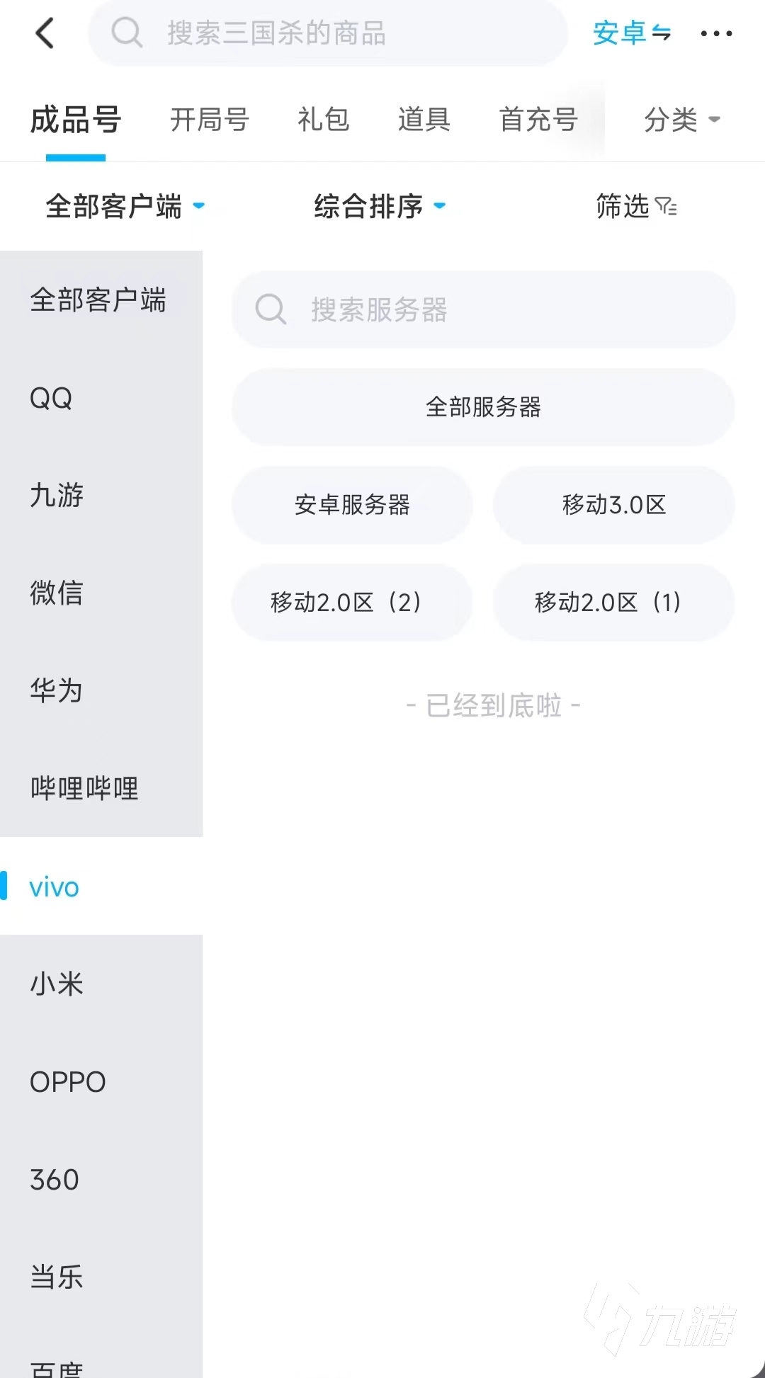 區(qū)服多不用怕,只要平臺分類明確就可以快速解析定位,完全避免了“大海撈針”的窘迫場面。交易貓平臺該內(nèi)開辟了海量游戲?qū)^(qū),這其中就包含三國殺這款游戲。在專區(qū)中玩家可以通過“全部客戶端”選項來選擇對應(yīng)的渠道(例如vivo),這樣就等于在海量三國殺訂單中進(jìn)行了初步篩選。如果玩家還有其他細(xì)化要求,則可以通過輸入關(guān)鍵詞、或“篩選”功能進(jìn)行更精確的查找,非常方便快捷。