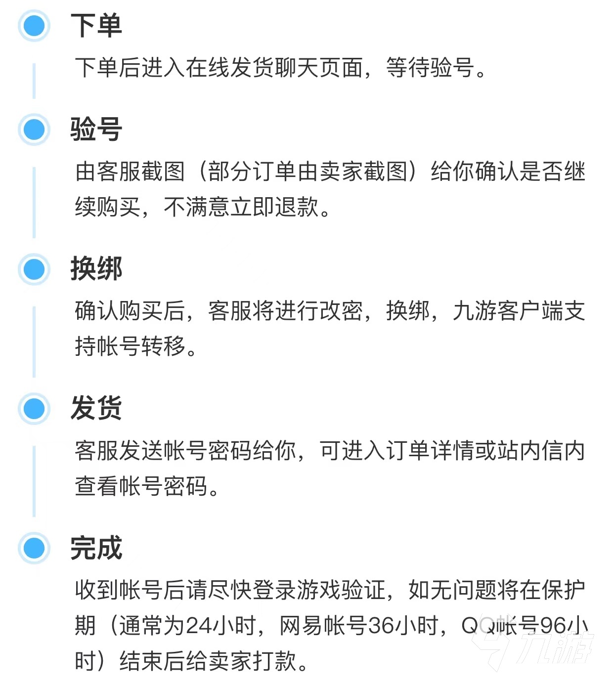 很多小伙伴擔(dān)心交易過程的安全問題,換綁和上號如果私下進(jìn)行都是有一定風(fēng)險(xiǎn)的。交易貓官方流程是:從下單后進(jìn)入在線發(fā)貨頁面,有24小時(shí)專業(yè)客服隨時(shí)服務(wù)。再由客服上號截圖給買家確認(rèn),再進(jìn)行換綁等操作。最后還有賬號保護(hù)期,保護(hù)期結(jié)束后才會給賣家打款,安全度拉滿。
