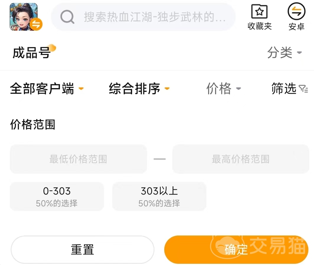 很多玩家會入駐交易貓來進行賬號的交易,所以這個平臺上游戲賬號內(nèi)容非常多,很多小眾游戲都能搜索到,所以玩家想要對自己賬號定價時可以參考下這個平臺上的游戲賬號的定價區(qū)間。通過搜索可以知道這個游戲在360元定價左右的賬號關(guān)注度較高,想要賣號的話可以參考下這個價格區(qū)間。