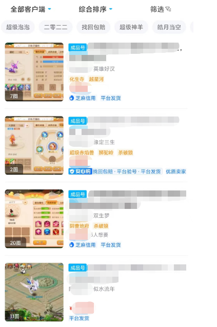 1、賬號種類齊全。夢幻西游中各個等級都能卡級玩法,像是比較主流的卡69、99、109等級的都有,賬號處于的服務(wù)器也能展現(xiàn)出來,買家只需通過標(biāo)題就能定位自己喜歡的號,像是一個超級泡泡的賬號價格也頂多在幾百元左右,要比自己養(yǎng)成投入的少許多。