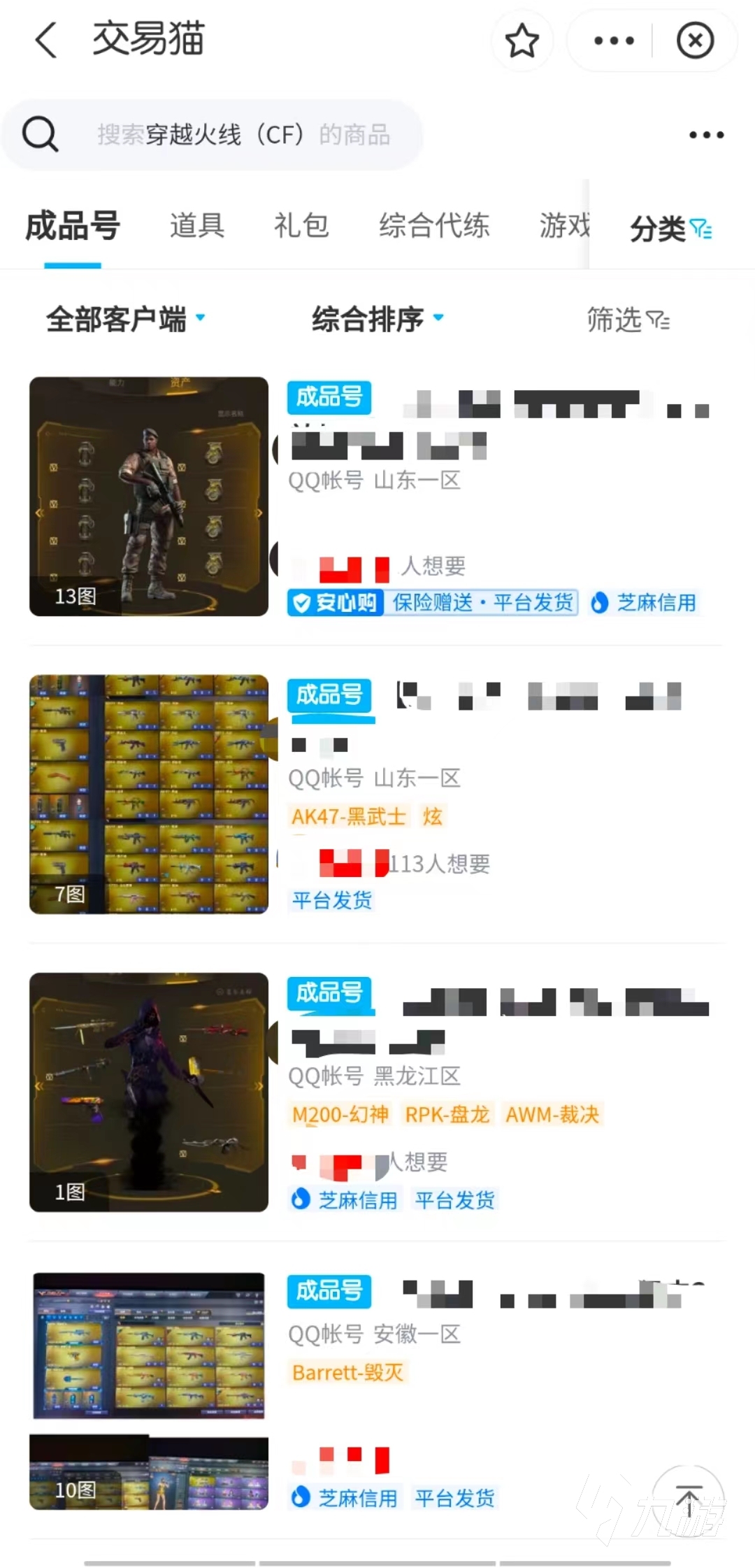 當(dāng)然了,在交易貓中并不是只有cf生化號,各種不同種類的賬號應(yīng)有盡有,可以完美適應(yīng)各種喜好的玩家,如果你資金充裕,可以購買一些大神的賬號,游戲內(nèi)的武器足以滿足你所有的需求。