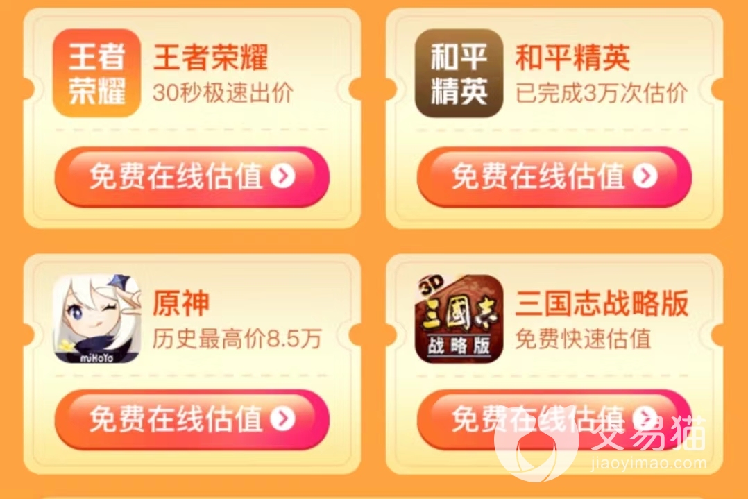以上就是游戲號估價平臺哪個好全部內(nèi)容了,希望對大家有所幫助。想要出售賬號又不知道怎么估價的小伙伴趕緊來試一試交易貓,估價完畢以后在上面出售賬號,一站式服務好方便。