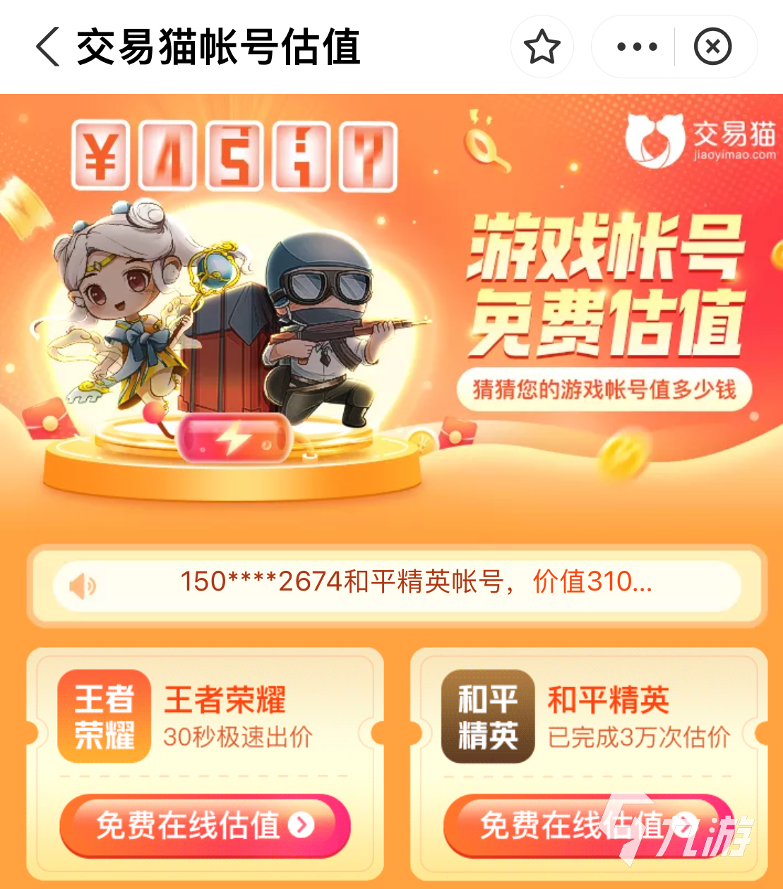 來源: 極光 作者: chiara 2023年02月15日 16:07游戲的價(jià)值每個人都是不一樣的,喜歡的游戲裝備什么價(jià)格都能接受,不喜歡的或者功能一般般的什么價(jià)格都不能接收,那么賣號估價(jià)平臺怎么選,哪個平臺的估價(jià)比較公道又合理或者是能夠反映市場普遍行情,那就來看看小編推薦的交易貓游戲交易平臺,作為一款阿里巴巴旗下的游戲交易軟件,是非常靠譜可靠的游戲交易平臺。