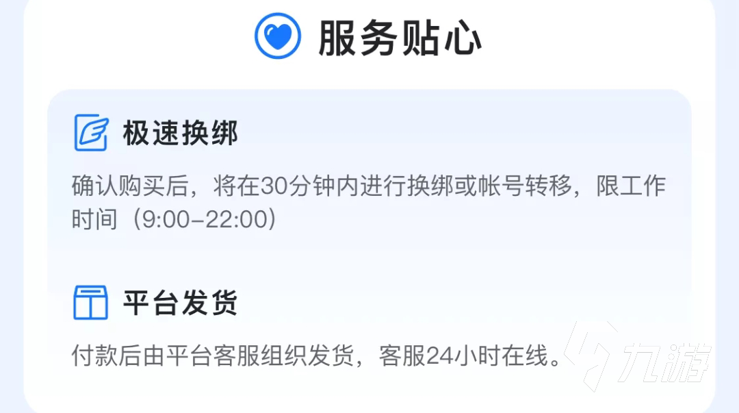 如果是首次購買游戲賬號的小白,在進行游戲賬號交易當(dāng)中,難免會透露出緊張和不安,因為他們沒有經(jīng)驗。而貼心的客服會一步一步地引導(dǎo)用戶的交易過程,并且會有十分溫柔的小姐姐進行安慰和疏導(dǎo),使得用戶交易體驗極佳非常愉快。