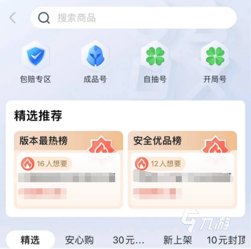 現(xiàn)在也確實(shí)很少能有平臺(tái)做到像它這樣,不僅開(kāi)設(shè)了多個(gè)不同賬號(hào)專區(qū),同時(shí)還帶有包賠服務(wù),玩家也可以去根據(jù)精選的熱門推薦來(lái)查找想要的賬號(hào),不論是人氣榜單,還是安全優(yōu)質(zhì)賬號(hào)榜,用戶都能夠在這里看到,最重要的是小伙伴們即使只有10元也能去專屬的專區(qū)里面去選購(gòu)心儀賬號(hào),很多平臺(tái)可是沒(méi)有這樣待遇的呢。