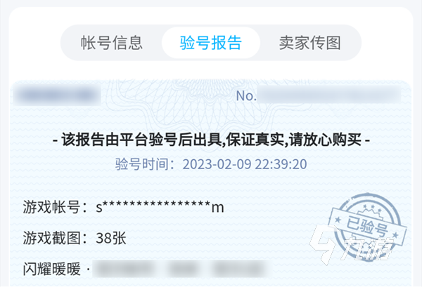 第二個(gè)比較特色的服務(wù)就是驗(yàn)號(hào)報(bào)告了,很多平臺(tái)也帶有驗(yàn)號(hào)的服務(wù),不過一般都是在下單付款之后來進(jìn)行驗(yàn)證。而交易貓則是在賣家上架商品的時(shí)候就率先開啟一次核驗(yàn),并且在核驗(yàn)完畢之后出具相關(guān)的截圖報(bào)告,讓我們?cè)谔暨x階段就能夠看到號(hào)里帶有的內(nèi)容。當(dāng)然了,如果擔(dān)心原號(hào)主對(duì)其進(jìn)行了更改或者是調(diào)換,也可以在下單付款之前要求進(jìn)行第二次的查驗(yàn),這個(gè)服務(wù)也是免費(fèi)的,不過也只有部分的賬號(hào)才支持,大家可以看商品圖片左下方有沒有已驗(yàn)號(hào)的標(biāo)記,或者是在詳情頁中找一下有沒有驗(yàn)號(hào)報(bào)告的存在。