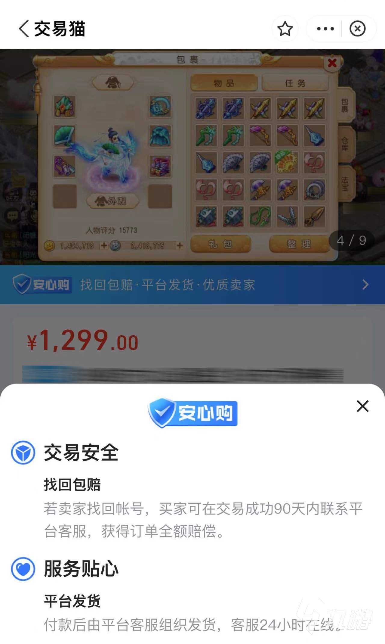 有很多朋友不敢在網(wǎng)上購(gòu)買(mǎi)賬號(hào),主要還是擔(dān)心賣(mài)家將賬號(hào)找回,或者被人盜號(hào)。即便是在便宜的商品,也是自己的心血,容不得別人糟蹋。還好交易貓會(huì)精心地審核每一個(gè)賣(mài)號(hào)的人,然后還為部分商品提供安心購(gòu)商品的服務(wù)。就算出現(xiàn)萬(wàn)分之一被找回的概率,也可以將賠償款打到你的賬戶上,讓你可以安心地在夢(mèng)幻西游的世界里耕耘,不擔(dān)心出現(xiàn)意外情況。