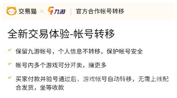 大多數(shù)人都是用一個九游號去注冊游戲的,所以在出號時,很怕自己的個人信息也被轉(zhuǎn)移了,為了解決大家這方面的問題,平臺專門與九游進行合作,進一步簡化轉(zhuǎn)移流程,還進一步提升了交易安全性,讓你能擁有一個舒適的出號體驗。