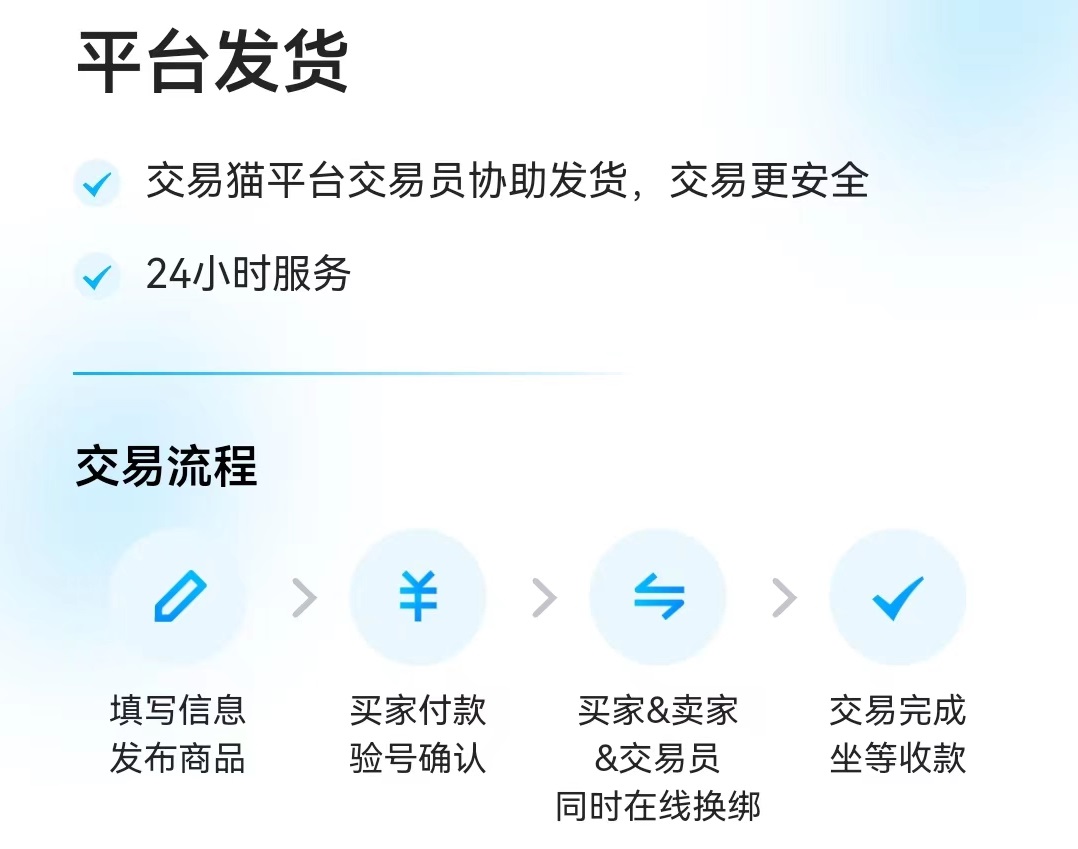 其實對于買家來說交易是否值得擔憂,無非就是在發(fā)貨問題上平臺是否能夠幫助介入解決,而該平臺的發(fā)貨主要分為兩種,一種是交易專員協(xié)助賣家發(fā)貨;另外一種則是平臺自動發(fā)貨。前者是在用戶購買成品號的前提下,而且只是普通沒有繳納保證金的個人賣家,交易專員的作用就是幫助賣家解綁換綁;而后者平臺自動發(fā)貨的,就是那種購買初始號的,這種都是繳納保證金的賣家,如果有任何售后問題直接找商家處理即可。