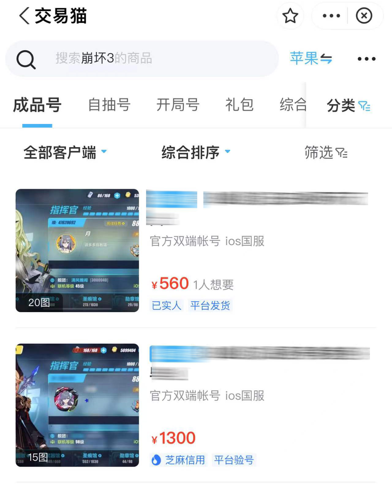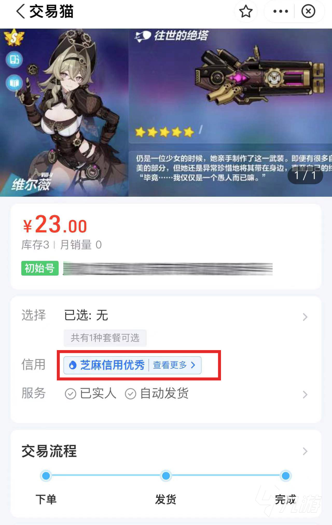 即便是崩壞3號的價格再便宜,如果玩不了一會兒就被人盜號或者找回的話,也會令人感到頭疼。交易貓可以顯示賣家的芝麻信用程度,甚至一些成交率很高或者信用程度很高的賣家還可以升級為優(yōu)質(zhì)賣家。當(dāng)你在買號的時候看清賣家的信用程度的話,就可以有效避免自己被坑。因為每一個優(yōu)質(zhì)賣家都是非常注重自己的口碑的,你可以放心購買,別人也不希望以后賣不出去商品。