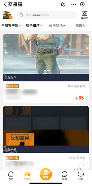 來(lái)源: 極光 作者: 檸檬 2025年05月19日 12:00CSGO作為火爆全球的射擊戰(zhàn)斗游戲,它提供了豐富的武器槍械和皮膚。它不僅獲得老玩家的青睞,還吸引許多新玩家。大家養(yǎng)號(hào)耗費(fèi)時(shí)間,不如買個(gè)現(xiàn)成賬號(hào)。今天小編分享csgo皮膚交易平臺(tái)。交易貓是成熟游戲交易平臺(tái),它不僅交易商品種類多,還線上教學(xué)游戲交易安全知識(shí),搭建了安全中心。