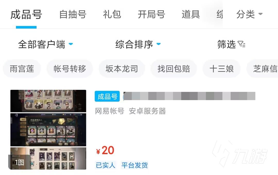 第五人格雖然是網(wǎng)易的游戲,但是也分為各大平臺的渠道服,其中玩家數(shù)量最多的九游賬號是支持賬號轉(zhuǎn)移發(fā)貨的,像第五人格游戲內(nèi)的金皮和紫皮都可以通過九游轉(zhuǎn)移綁定的直接換到買家的賬號中,而且等級還有游戲內(nèi)的符文也都可以完成交易,售后安全有保證,客服驗號截圖發(fā)貨更大程度的降低了交易風(fēng)險。