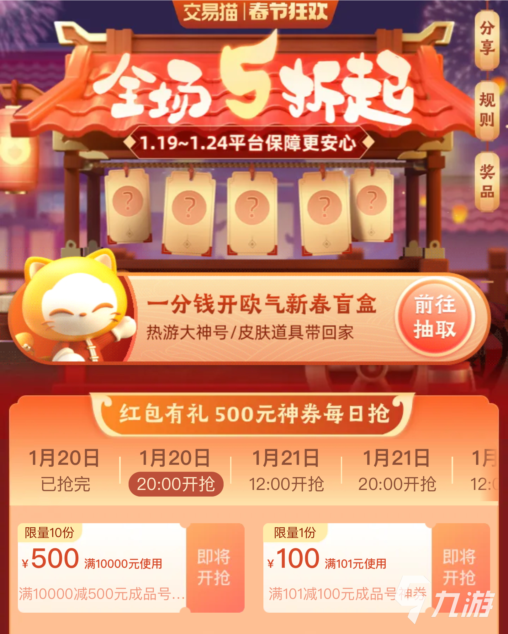 在大量不同類型賬號(hào)中,玩家能夠相互對(duì)比,對(duì)那個(gè)賬號(hào)的質(zhì)量、價(jià)格和性價(jià)比等進(jìn)行評(píng)判,讓玩家最終收入囊中的賬號(hào)每一分錢都沒(méi)白花;并且經(jīng)常有各種特色活動(dòng),玩家在活動(dòng)專區(qū)可以直接以折扣價(jià)格拿下賬號(hào),最近更是有新年活動(dòng),直接領(lǐng)取大額優(yōu)惠,交易折上折。
