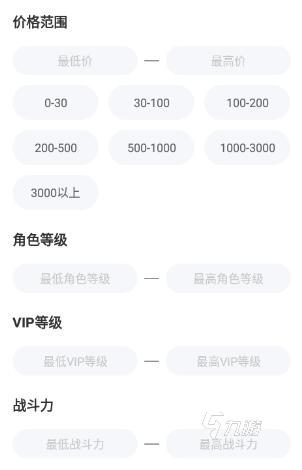 2.強大又精確的篩選功能,降低了找號的難度。在篩選功能當中,用戶可以根據(jù)自己的購號預算,選擇相應的價格區(qū)間,完成了各項選擇之后,直接點擊搜索,你就可以得到許多,符合你要求的賬號,這項服務可以為使用者,節(jié)省不少的時間。