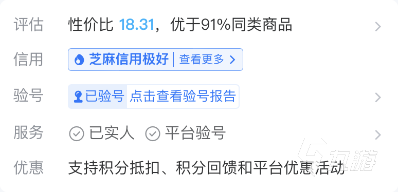 而且在考慮性價比的時候,玩家們也不用自己手動去計算,我們在點進賬號詳情界面之后,可以直接看到官方提供的性價比數(shù)據(jù),這個也是比較靠譜的,性價比高的玩家們可以快速就進行購買,同時我們也會與同類商品進行對比,高于90%的,那么玩家這個賬號買的就非常值了。