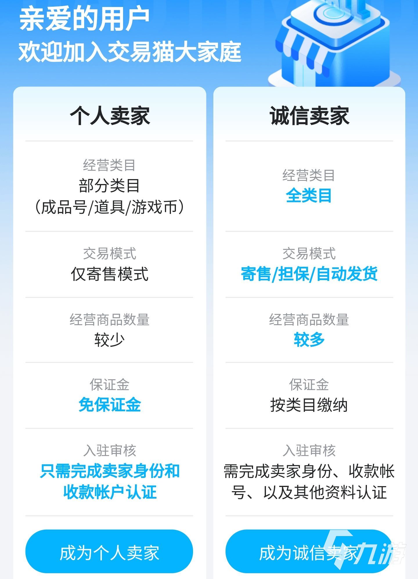 擔(dān)心游戲賬號(hào)交易大的一部分原因就是賣家容易走歪,交易貓從一開始就鼓勵(lì)想要賣號(hào)的用戶認(rèn)證誠(chéng)信賣家,不僅可以經(jīng)營(yíng)全品類的項(xiàng)目,而且寄售式的擔(dān)保式的交易模式也是支持自動(dòng)發(fā)貨的,僅需要繳納一部分保證金,就可以獲得平臺(tái)大流量的推送,這對(duì)買賣家雙方和平臺(tái)來說都是好事。