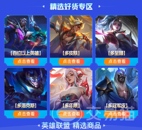我們點(diǎn)擊上方鏈接安裝交易貓軟件并且打開(kāi),進(jìn)入英雄聯(lián)盟專區(qū)中就可以看到有很多的賬號(hào)等待大家選擇。不管是新手適用帶有少部分強(qiáng)力英雄的還是老玩家可以用的全英雄賬號(hào)都可以輕松找到。而且這些賬號(hào)中基本都會(huì)帶有一些皮膚,更有一些會(huì)解鎖限定的活動(dòng)皮膚,都是比較難得的資源。如果大家需要在游戲中充值或者是找大神幫助我們完成定位、晉級(jí)賽,也可以在這里獲得一些大神的幫助,功能還是非常全面的。