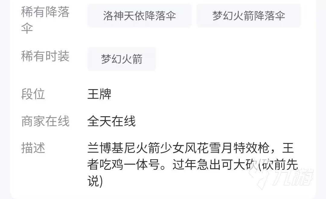 前面提到這兩款游戲均是QQ和微信登錄,所以在出售的時候大家肯定是都希望兩款游戲均能夠符合某個買家的要求,這對平臺的要求就更大了,先是買家的數(shù)量肯定要大,畢竟同時對兩款游戲有需求的可謂是少之又少,大多數(shù)人還是愿意占這個便宜買一款送一款;其次就是平臺的功能上允許玩家們在吃雞專區(qū)展示王者,在王者專區(qū)展示吃雞,這些在交易貓內(nèi)都可以實現(xiàn)。