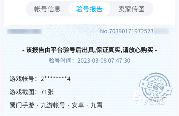 在賬號詳情的界面中,除了賬號本身公開的一些內(nèi)容,包括商品標題、價格、描述以及截圖之外,還會對我們賣家的一些信息進行展示。比如說我們的信譽等級情況,實人認證情況。在這里還會顯示賬號本身帶有的特色服務(wù),讓買家選得更加安心。蜀門手游的部分賬號在上架的時候可以勾選轉(zhuǎn)移的功能,這項服務(wù)是免費的,能夠把我們賬號中的數(shù)據(jù)直接遷移到買家的號里,不需要進行換綁。不僅是十分方便,而且節(jié)省了售后維護的成本,更重要的是我們自己原來的號還能夠當新號游玩,不影響其他的游戲。