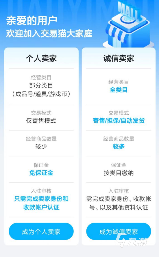 3、除了可以滿足購買游戲賬號的需求,交易貓平臺也為玩家們帶來了賣家資格申請的通道。對于那些準備脫坑rust的玩家來說,在這里成為一個賣家,就可以輕松發(fā)布各種商品信息。平臺內(nèi)也擁有充足的活躍用戶群體,大家的商品也會很快被交易出去。