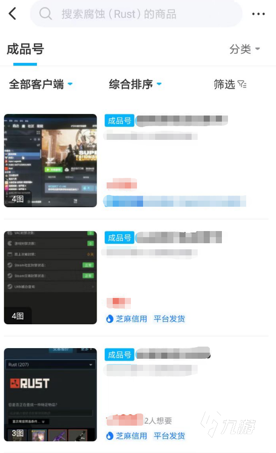 2、交易貓專門為rust的玩家準備了相關(guān)的交易專區(qū),在這里可以看到各種關(guān)于賬號的出售內(nèi)容,大家可以根據(jù)價格來進行判斷,同時每一個商品的詳情頁之中,也都會針對游戲賬號進行具體的描述,玩家們可以在參考的過程當中不斷進行對比,最終獲得一個滿意的游戲號。