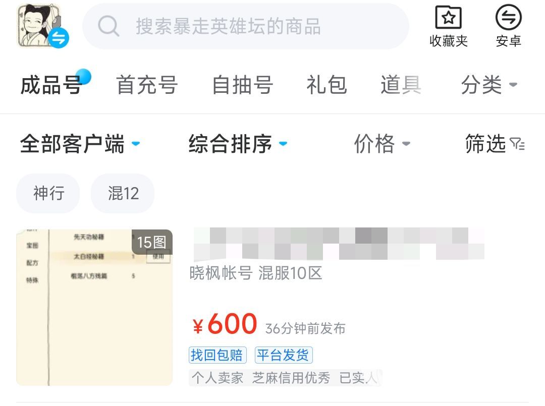 交易貓平臺(tái)本身的知名度讓很多玩家不管玩的多小眾的游戲一有賬號(hào)出售的需求就會(huì)想到在該平臺(tái)上出售,暴走英雄壇更是如此。針對(duì)該游戲還劃分了成品號(hào)、自抽號(hào)以及首充號(hào)等不同種類的交易分區(qū)。每個(gè)商品都會(huì)在專區(qū)主頁展示標(biāo)題,買家可以對(duì)感興趣的標(biāo)題點(diǎn)擊進(jìn)行深入了解,像賬號(hào)區(qū)服、等級(jí)、具體江湖排名錄、金條以及銀兩等關(guān)鍵信息都可以在買之前進(jìn)行全面的了解,讓大家不花冤枉錢買不確定的賬號(hào)!