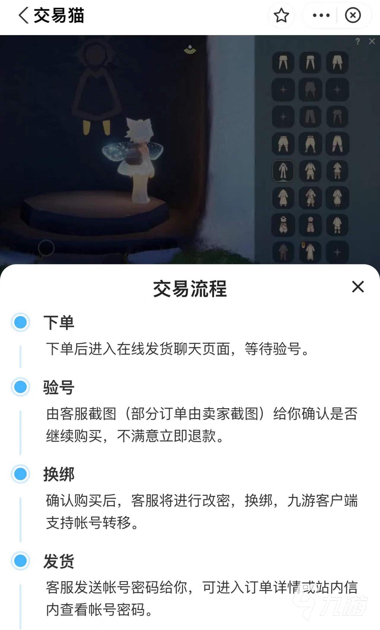 有些朋友對(duì)于買(mǎi)號(hào)還是相當(dāng)陌生的,不知道有哪些注意事項(xiàng)。其實(shí)買(mǎi)號(hào)最重要的是找一個(gè)靠譜的平臺(tái),交易貓則可讓你完全安心地在這里購(gòu)買(mǎi)光遇賬號(hào),因?yàn)槔锩婺転槟銕?lái)各種完善、好用的地方,下面就為大家介紹。