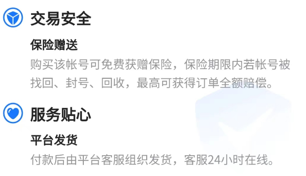 在交易貓購買到手一個賬號,最高能享受免費的三重保險和專業(yè)客服的服務,有些賣家提出的賬號價格可能會高一些,所以主動付費投保,這樣一來就有專門的保障,在限定的保險期之內(nèi)賬號若出現(xiàn)問題,就會根據(jù)保險內(nèi)容去給買家進行賠付,單重保險不足以滿意的話,也可在購買階段再次投保,雙重保險之下賣家也無計可施。