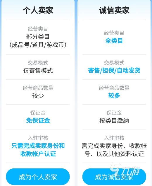 1、交易商品在這個(gè)平臺(tái)當(dāng)中顯得格外簡(jiǎn)單,先是鎖定好自己的賬號(hào),然后根據(jù)詳細(xì)的服務(wù)器信息和賬號(hào)信息來(lái)登記上架,操作流程也很簡(jiǎn)單,在首頁(yè)當(dāng)中點(diǎn)擊成為【成為賣家】即可,大家只需要進(jìn)行一個(gè)簡(jiǎn)單的實(shí)名認(rèn)證,然后就能將自己的游戲賬號(hào)掛售在平臺(tái)當(dāng)中。