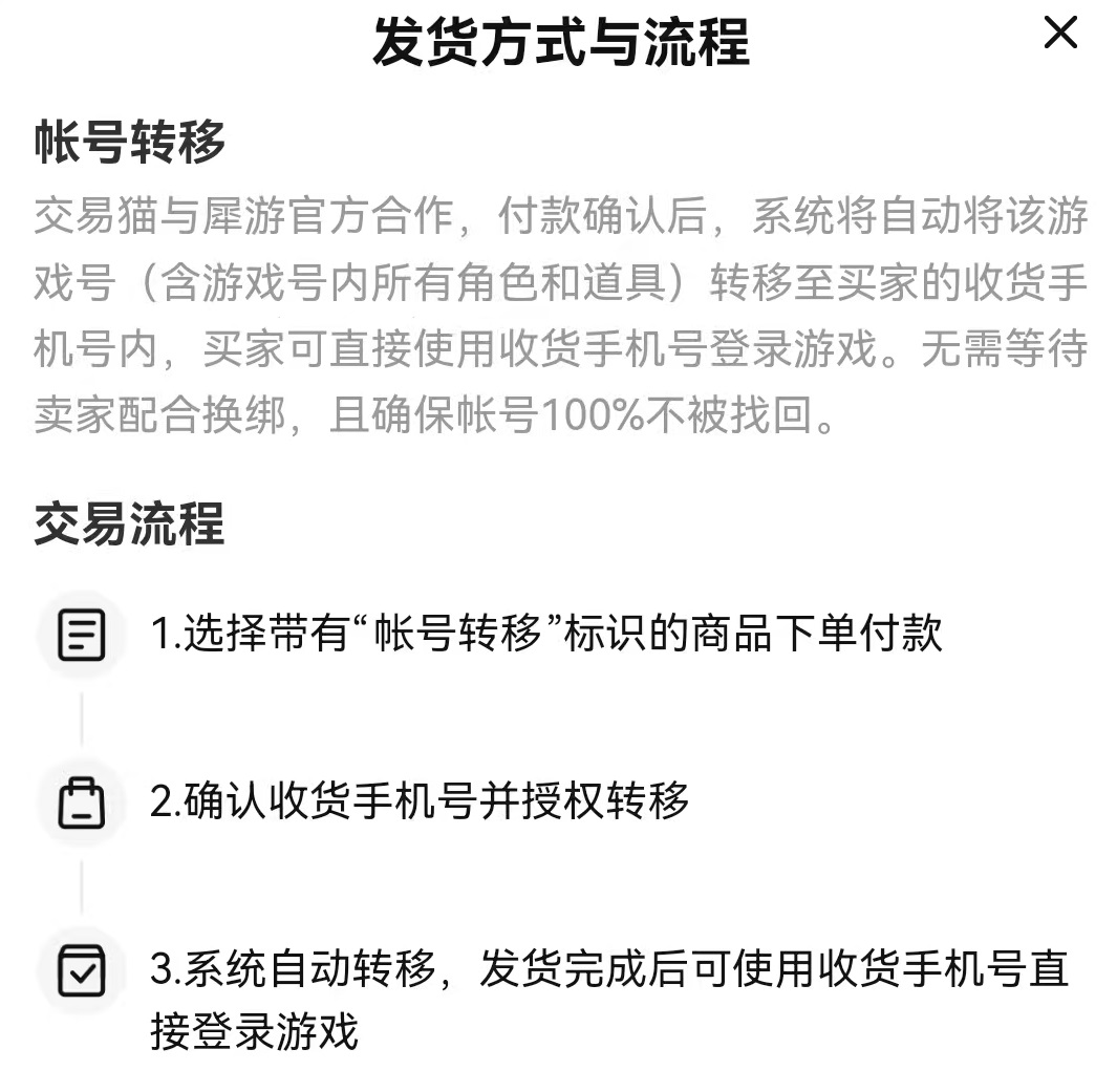 三國志戰(zhàn)略版是交易貓中非常熱門的商品,搜索游戲名稱就可以直接找到海量可交易內(nèi)容,在分類中就能直接找到適合自己的商品。目前在交易貓中,進(jìn)行初始號出售的都是屬于平臺保證金買家,這些保證金賣家繳納過保證金,在平臺認(rèn)證方面也非常嚴(yán)格,所以安全性值得信賴。再打開商品類型之后,可以直接查看一下賣家當(dāng)前情況,包括是否進(jìn)行實人制,是否屬于保證金賣家等,還有其他很多認(rèn)證項目,例如和芝麻信用綁定一起,查看一下當(dāng)前芝麻信用情況,這些都有助于找到靠譜商家。因為三國志戰(zhàn)略版這款游戲的特殊性,所以初始號還存在有賬號轉(zhuǎn)移服務(wù),由交易貓和三戰(zhàn)游戲官方合作,系統(tǒng)直接將游戲號內(nèi)道具以及角色轉(zhuǎn)移至買家收貨手機(jī)號內(nèi),這樣直接使用收貨手機(jī)號碼登錄游戲,就能夠開心開始戰(zhàn)斗了。