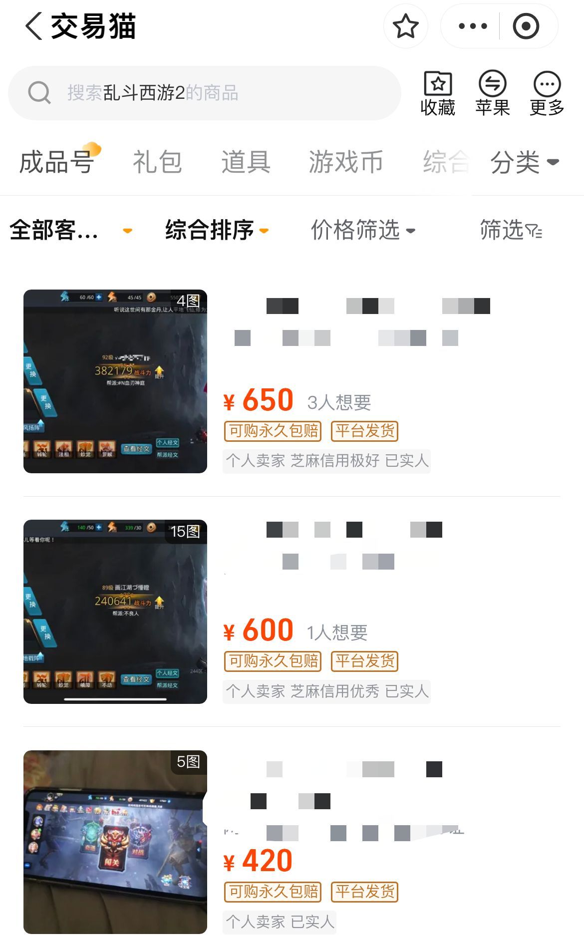市面上類似的平臺其實(shí)有很多的,但是不是因?yàn)橄到y(tǒng)不完善就是游戲資源不足被大家避開,交易貓這里所支持的游戲數(shù)量基本沒有限制,除了當(dāng)前玩家的經(jīng)典熱門游戲之外,還會看到很多小眾冷門游戲商品鏈接。在亂斗西游2游戲的專區(qū)里邊不僅能夠看到各種成品和自抽號,還能選購到各種道具和皮膚,不同禮包的價(jià)格都十分優(yōu)惠,大家可以像土豪一樣激情下單。