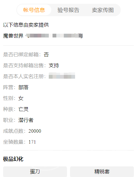 當(dāng)然一個(gè)魔獸號(hào)中存在的信息很多,這是為了盡可能的提升自身賬號(hào)價(jià)值。賣家可以在詳情頁中盡可能的描述自己賬號(hào)中有哪些值錢的道具或者角色,然后買家便可一目了然的看見這個(gè)賬號(hào)中有哪些東西?這樣彼此之間就節(jié)省了許多溝通成本,可按需交易。