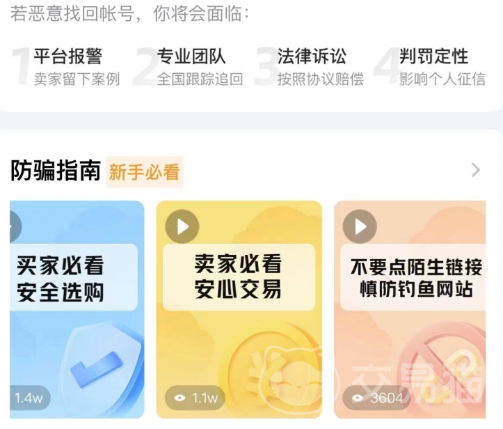 此外它還是一個十分注重用戶隱私和安全的平臺,在安全中心里就提供了很多專業(yè)的視頻化教學,涉及釣魚、站外引導等多種行為,為的就是讓新人也能很好的去規(guī)避和防范,讓自己能夠去獲得穩(wěn)定且良好的交易環(huán)境,不用在擔心自己在里面會遇到騙子。